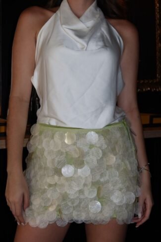 ¡Un destello de sol en tu armario! Shimmer Skirt ✨ Una minifalda espectacular cubierta por un mosaico de lentejuelas texturizadas en tono Nude que brillan con cada movimiento. Es la pieza perfecta para elevar un look casual o para ser la estrella de la noche. Con la calidad y ese sello GINEBRA que te asegura un look magnético e inolvidable. ¡Prepárate para deslumbrar! 🥂☀️