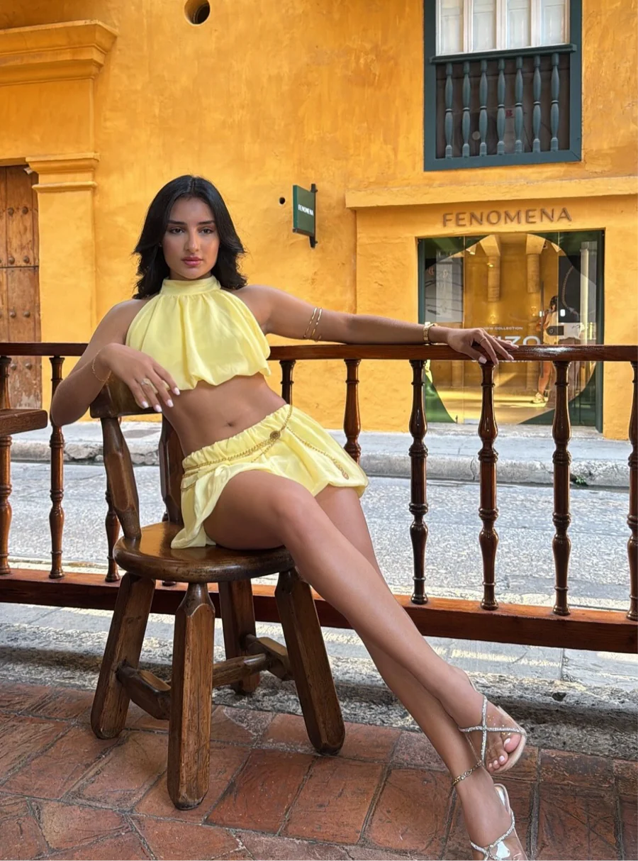 Tu set perfecto para el verano: Costa Set ☀️ Set amarillo top espalda descubierta y mini falda, sexy y sofisticado. ¡Actitud GINEBRA que te hace destacar!
