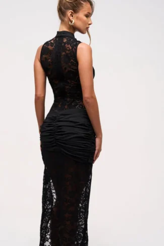 Eleva tu estilo con el Caviar Mesh Dress en Ginebra, deslumbra con este vestido elegante con mangas de malla translúcidas y detalles fruncidos. Ideal para eventos nocturnos, combina sofisticación y estilo en un diseño único.