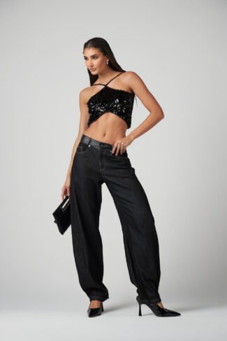 El pantalón que te convertirá en la reina de la pista de baile: ¡Spicy Pant Noir! ✨ Un diseño espectacular de tiro alto y bota campana que alarga la figura, completamente cubierto por una galaxia de pequeños brillantes que destellan con cada movimiento. Es la pieza perfecta para bailar sin parar y sentirte la protagonista. Con la calidad y ese sello GINEBRA que te asegura un look que es pura energía y te convierte en el centro de atención. ¡Prepárate para deslumbrar! 💃💎