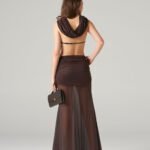 - Con el Ari Mesh Body (como en una de las fotos): Si buscas un look más producido y con un toque sexy, el Ari Mesh Body (en el tono que mejor combine) es una opción ideal para la falda marrón.