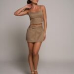 Set de top con cremallera y tiras con tensores. Mini skirt talle medio