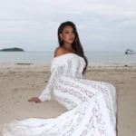 - Zapatos: Sandalias planas de tiras finas y elegantes, alpargatas de cuña o incluso descalza para un evento en la playa. Para un toque más elevado, sandalias de tacón minimalistas.