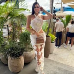 La personificación del lujo bohemio: ¡Solleta Dress! ☀️ Un vestido largo espectacular, tejido a mano en crochet blanco/crudo, que parece una joya artesanal. Su diseño halter y los audaces cut outs laterales crean una silueta de diosa inolvidable. El tejido calado juega con las transparencias, ideal para lucir sobre tu bikini favorito. Con la calidad y ese sello GINEBRA que te posiciona como el epítome del estilo resort chic. ¡Prepárate para ser la visión más admirada del lugar! ✨🐚
