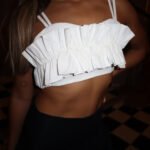 Crop top de copas con detalle de boleros inferiores con tiras en los hombros y amarre posterior. Además, es totalmente adaptable a la amplia variedad de colección de conjuntos también pertenecientes a la marca con la cual se pueden adaptar distintos looks dependiendo la ocasión.