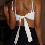 Top nudo con tiras de amarre en hombro, y parte trasera de amarre gradual.