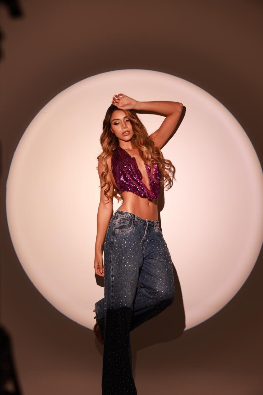 - Noche & Brillo: Combínalo con pantalones de lentejuelas, una falda metalizada o pantalones efecto piel de tiro alto. Sandalias de tacón y ¡lista para brillar con luz propia! ✨