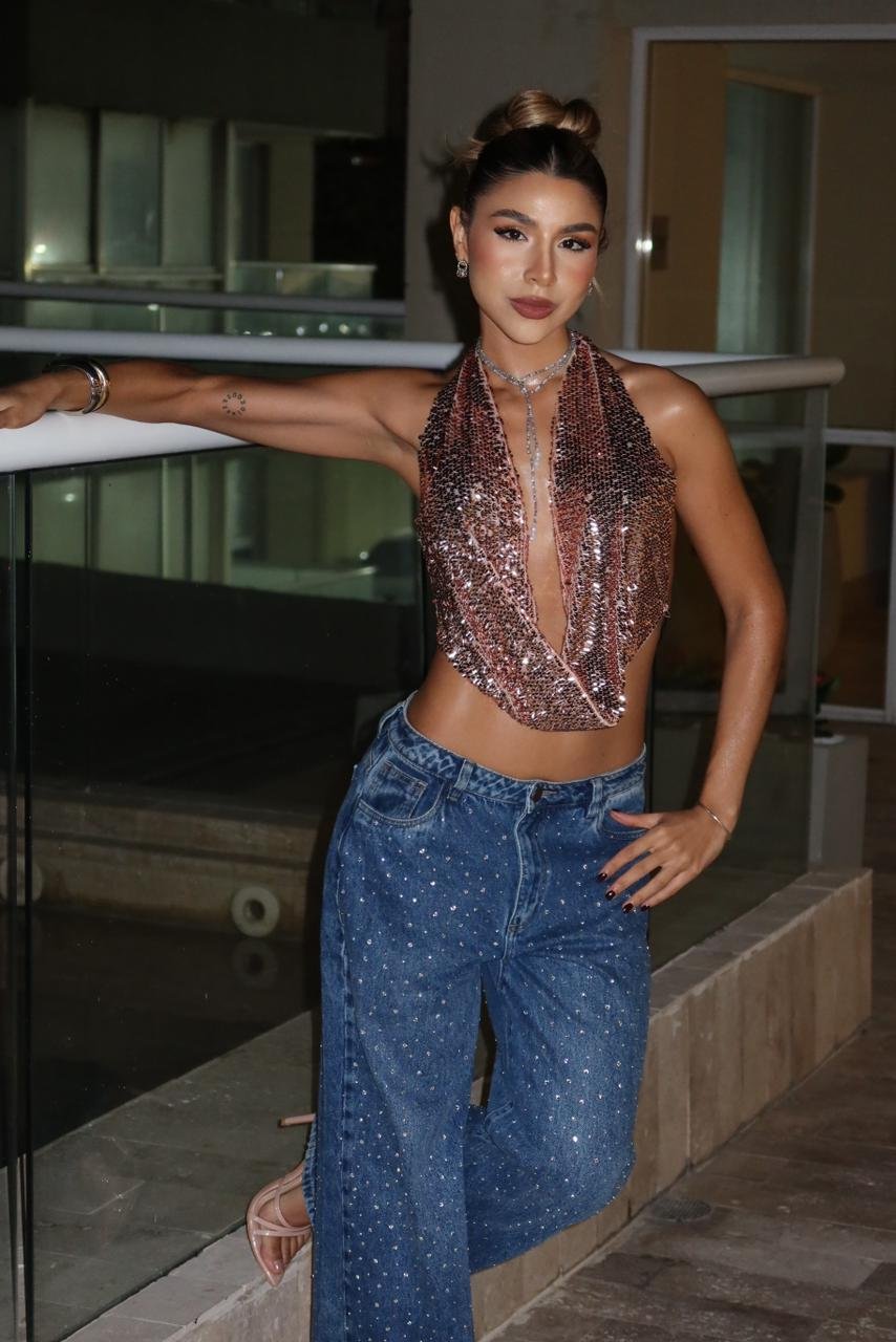 ¡La prenda definitiva para ser el alma de la fiesta! Conoce el Top Vibes ✨ Disponible en 6 tonos explosivos para cada personalidad: Rojo, Oro Rosa, Verde Oliva, Negro/Verde, Fucsia y Morado. Este top tipo «babero» está confeccionado en una deslumbrante malla de lentejuelas que cae con fluidez, creando un seductor escote profundo en V al frente. Su espalda es pura audacia: totalmente descubierta y sujeta únicamente por una delicada cadena metálica que cruza y se ajusta a tu medida, funcionando como una joya directamente sobre tu piel. Con la calidad y ese sello GINEBRA para deslumbrar en tu próximo concierto, festival o noche de rumba. ¡Puro fuego y movimiento!
