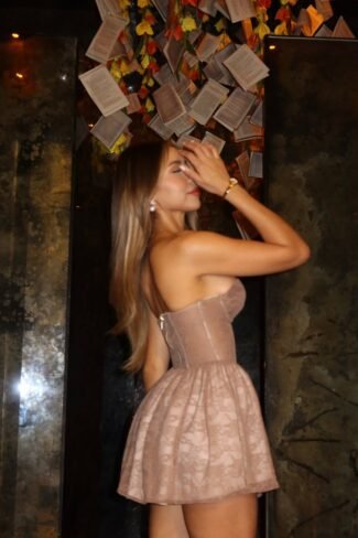 Top nudo con tiras de amarre en hombro, y parte trasera de amarre gradual.