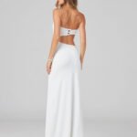 El vestido que personifica la elegancia relajada y la sensualidad del verano: ¡Violette Maxi Dress! ✨ Disponible en blanco puro, azul cielo o un sofisticado tono tierra/marrón. Su diseño presenta un top bandeau con un encantador detalle central (parece un lazo o una conchita), unido a una falda larga y fluida que revela sutiles pero impactantes cut outs en los laterales de la cintura. La espalda también cuenta con un cierre de botones chic. Confeccionado en un tejido texturizado ligero, perfecto para los días cálidos y las noches estrelladas. Con la calidad y ese sello GINEBRA que te asegura un look que no solo atrae miradas, sino que las captura. ¡Prepárate para sentirte como una diosa! 🐚💖