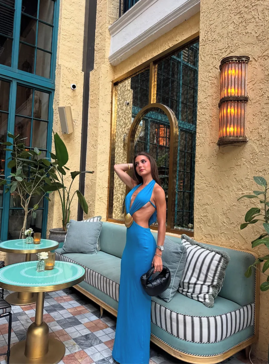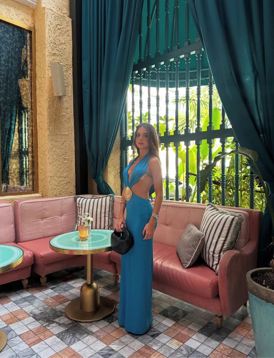Tu vestido perfecto para impactar: Zama Dress 🩵 Vestido largo escote profundo, sexy y sofisticado. ¡Actitud GINEBRA que te hace destacar!